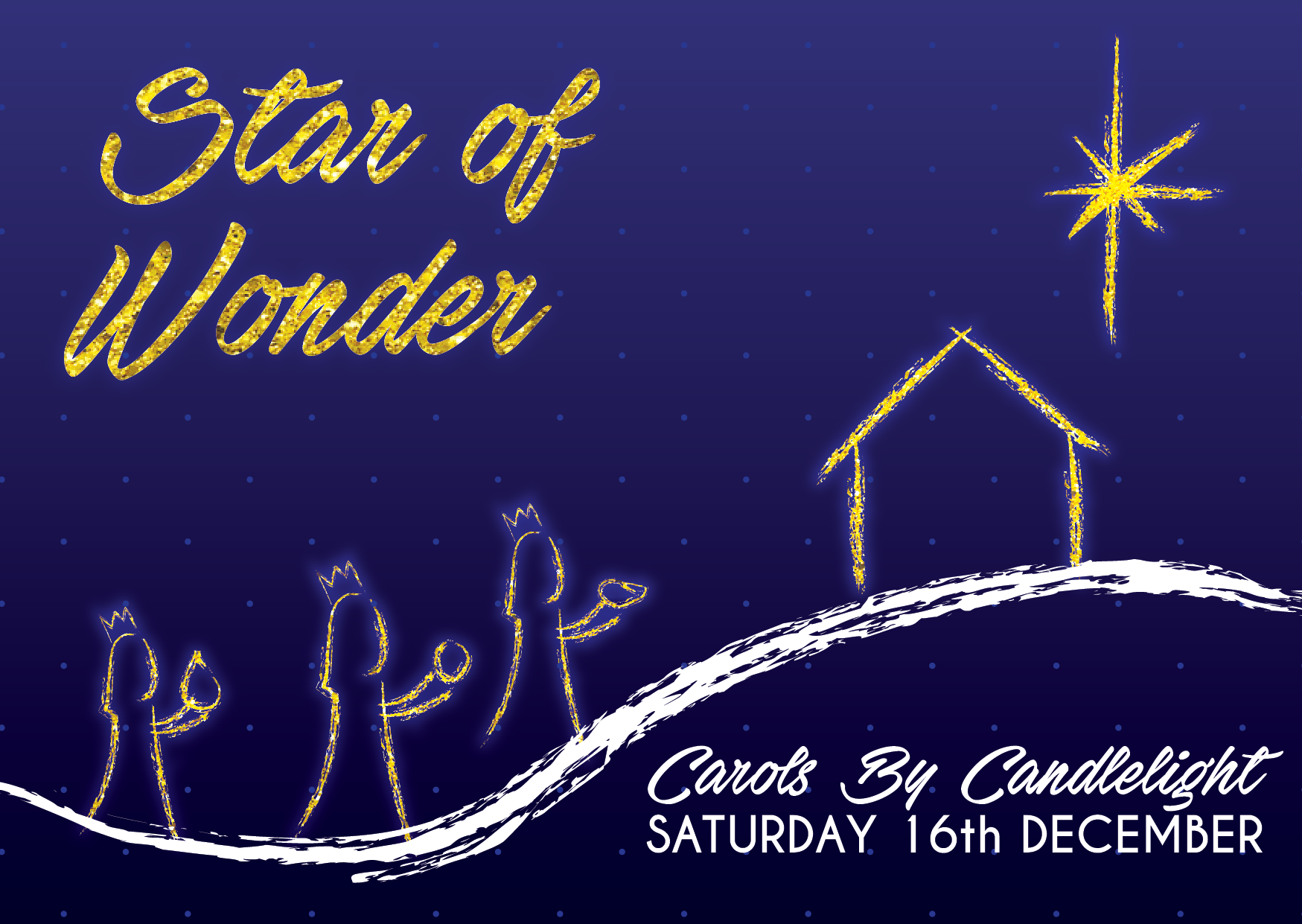Designed for Miranda Congregational Church, this flyer was distributed around the neighbourhood before the annual Christmas carols service. The key message of the night followed the idea of the star which pointed people towards Jesus, and what that means, hence the theme ‘Star of Wonder’. The flyer aims to draw in a crowd from around the area of those who were looking to hear more about the Lord, aiming to appeal to people who don’t necessarily attend church every Sunday.
