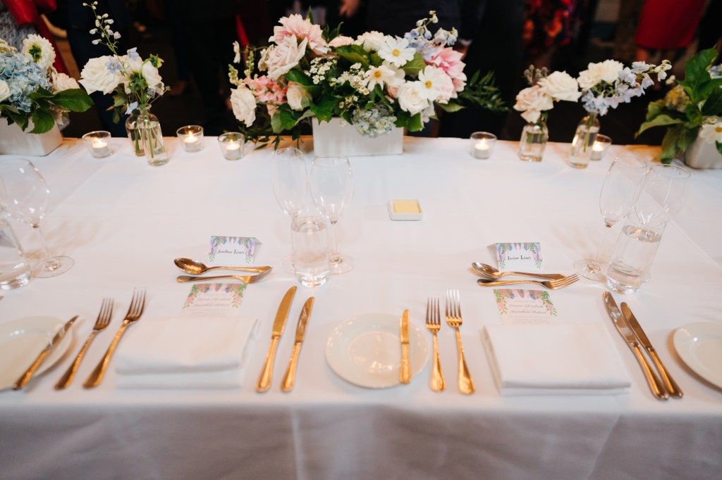 Printed through Spirit Group, the stationary was set on a pearly card stock which brought out the detail of the hand painted flowers in the design.
